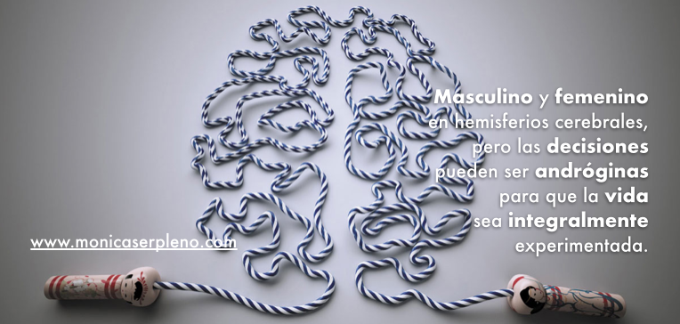 Sin embargo, el cerebro andrógino existe…almas andróginas en cuerpos femeninos o en cuerpos masculinos, amando tan en fusión lo yang con lo yin, explorando lo desconocido, buceando en aguas profundas, iluminando minas de piedras sub realistas….hasta explotar en un Big Bang fluorescente, inventando colores más allá del arco iris…Trascendiendo la dualidad de este plano físico y descubriendo la esencia de la que nos enamoramos, más allá del cuerpo.